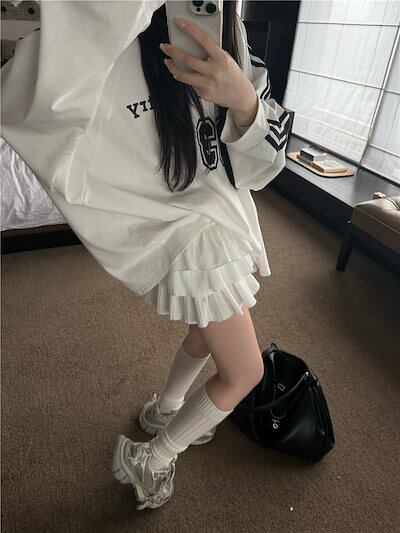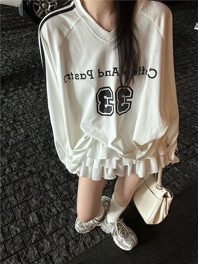 2024秋冬トップス レタープリント ナンバリング 長袖 オーバーサイズ サイドレトロ 韓国系ファッションネック レディース 大人可愛い ガーリー
