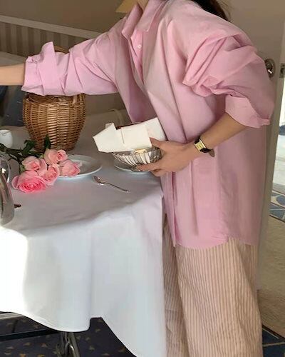 2024秋冬トップス シャツ 襟 スタンダードカラー ストライプ ボタン 長袖 ゆったり 秋 白 青 水色 おしゃれ かわいい 韓国ファッション レディース お出かけ