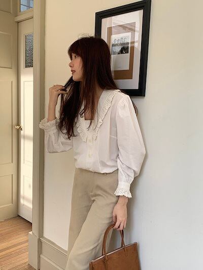 2024秋冬トップス シャツ 長袖 レース スクエアネック ゆったり 秋 白 ホワイト おしゃれ かわいい 韓国ファッション レディース お出かけ