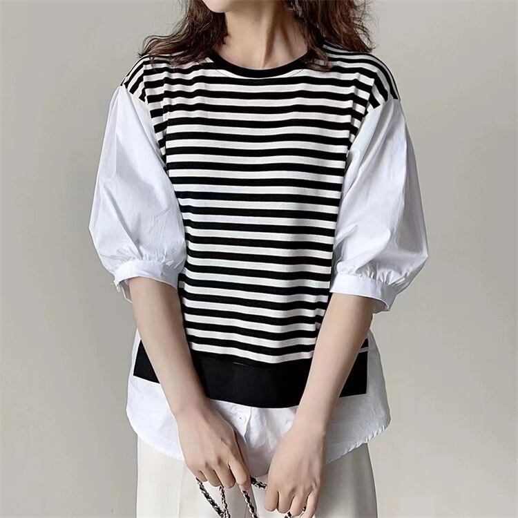 大感謝祭限定 ボーダー 縫付 半袖シャツ 快適である 2023夏 シンプル おしゃれ ゆったりする 新品