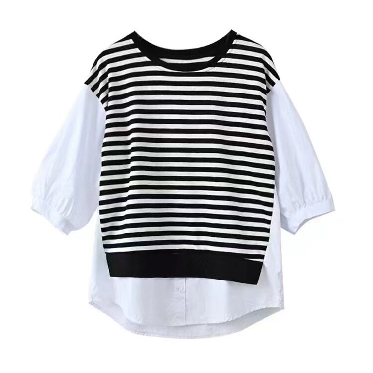 いまだけ 特価 ボーダー 縫付 半袖シャツ 快適である 2023夏 シンプル おしゃれ ゆったりする トレンド