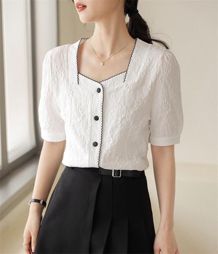 イメージ通りでした ジャカード スクエアネック 半袖シャツ 2023新品 シフォンシャツ カジュアル
