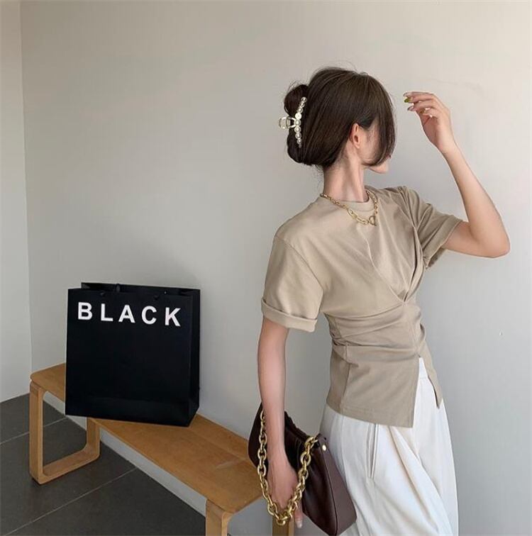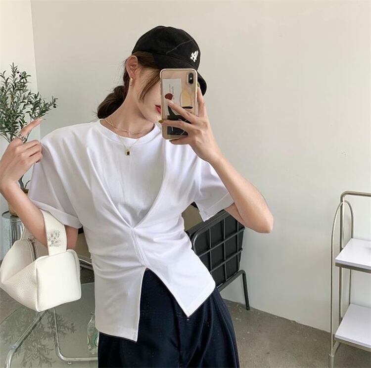 気質の女神は本当に綺麗です イレギュラー デザインセンス 受け取って腰 上着 スプリット 半袖 Tシャツ