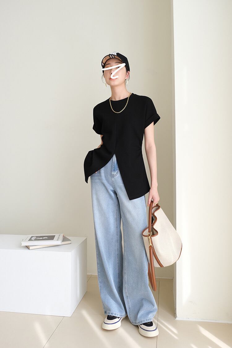 着痩せ効果 早い者勝ち 半袖 デザインセンス スリム エレガント 怠惰な風 Tシャツ 2023夏 上着