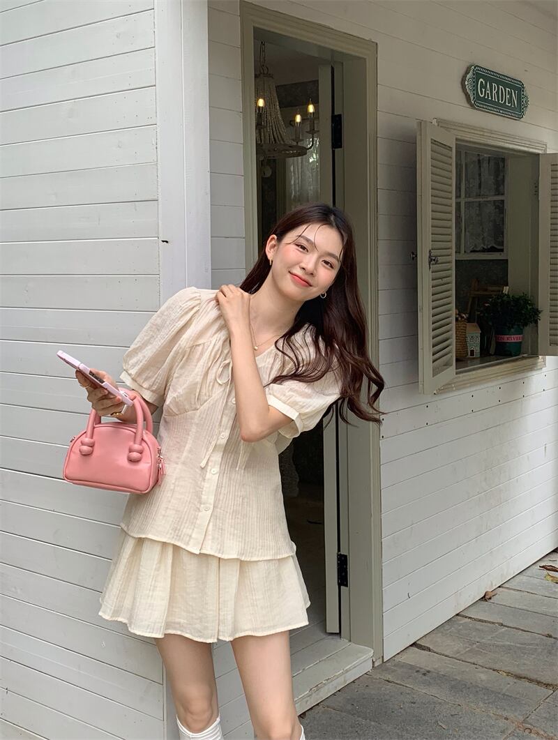 2023夏INS新作★気質 Vネック 半袖ブラウス +ショーパン セット 韓国系 カジュアル系