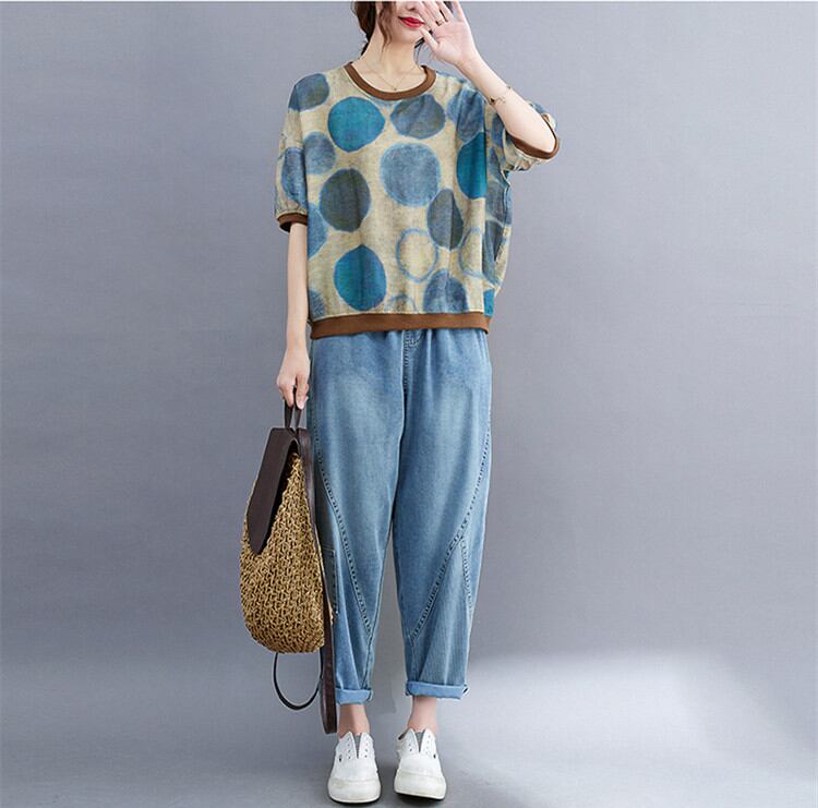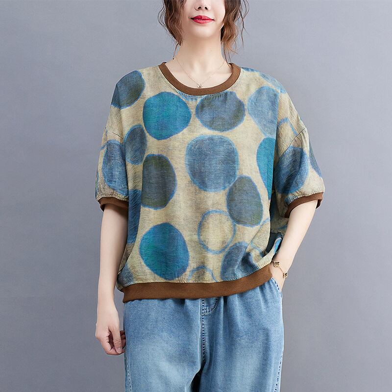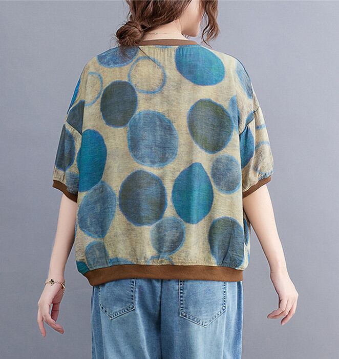 【2022新作】春夏水玉半袖Tシャツカジュアルトップス