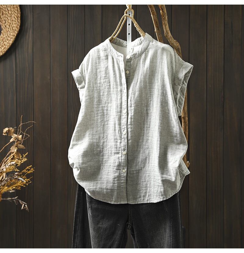 見なきゃ損する 夏 シャツ ゆったりする カフ 半袖 綿麻 上着 詰め襟 文芸 二重綿糸 トレンド 袖なし