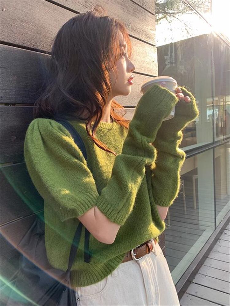 清純で人をうっとりさせる 半袖 sweet系 ニットトップス 2024新品 ギャザリング レディース セーター