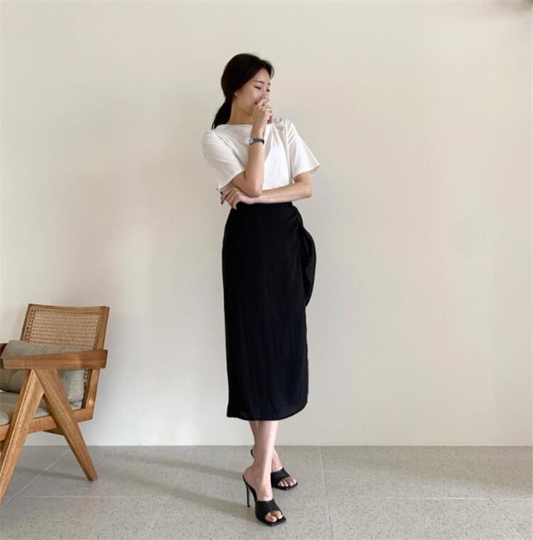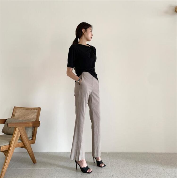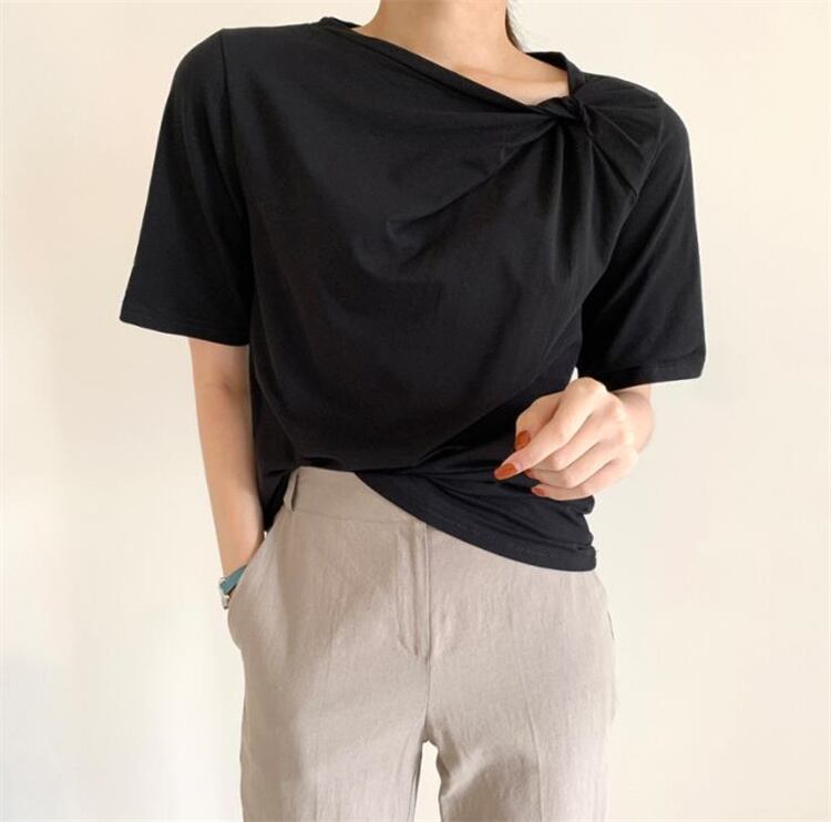 カジュアル 半袖 Tシャツ 上着 気質 イレギュラー ラウンドネック キンク デザインセンス