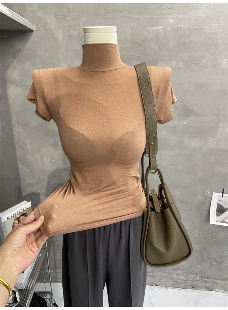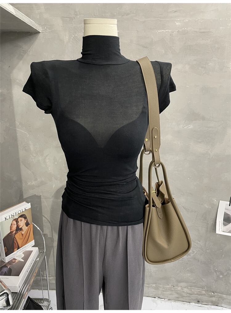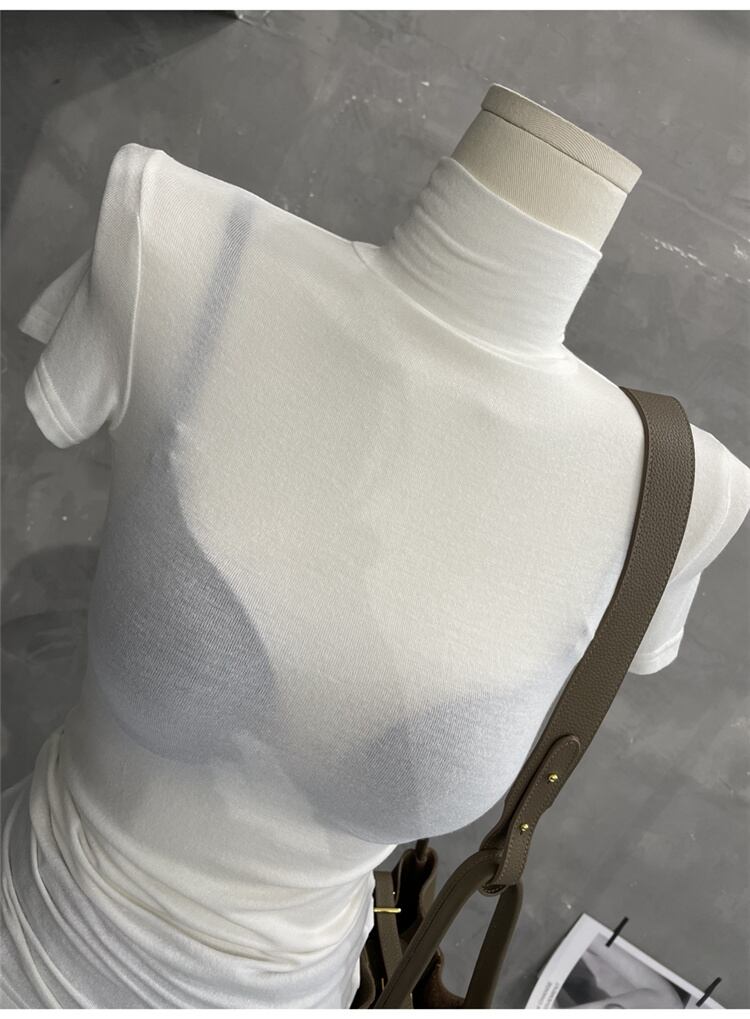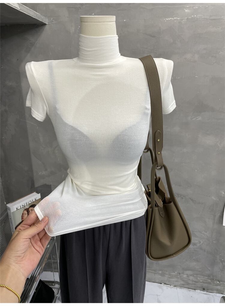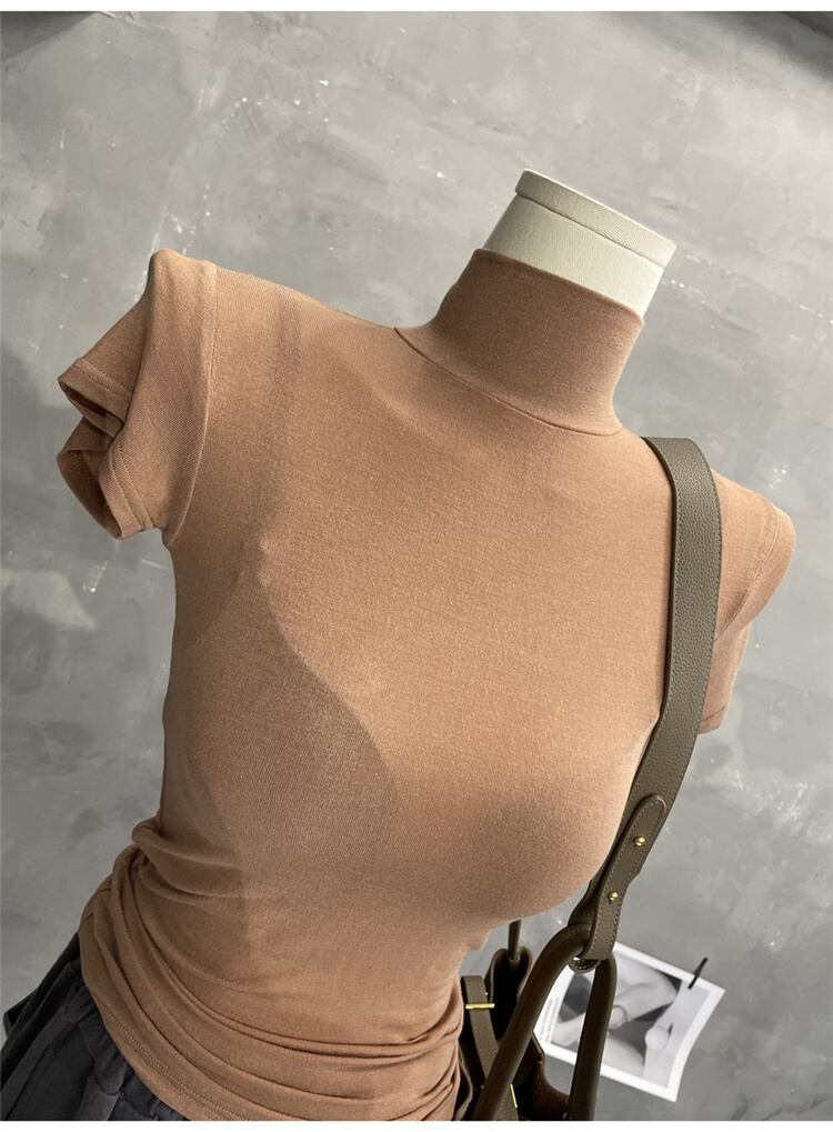 1枚でコーデ簡単 激安セール 薄い オシャレ カジュアル シンプル タートルネック 半袖 Tシャツ セクシー
