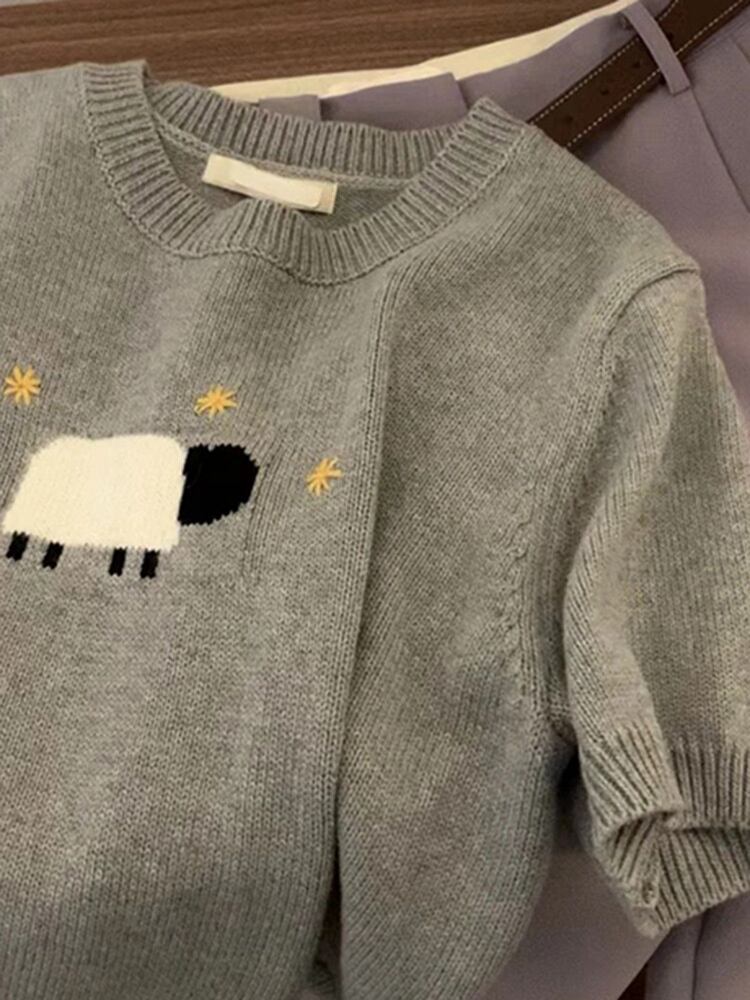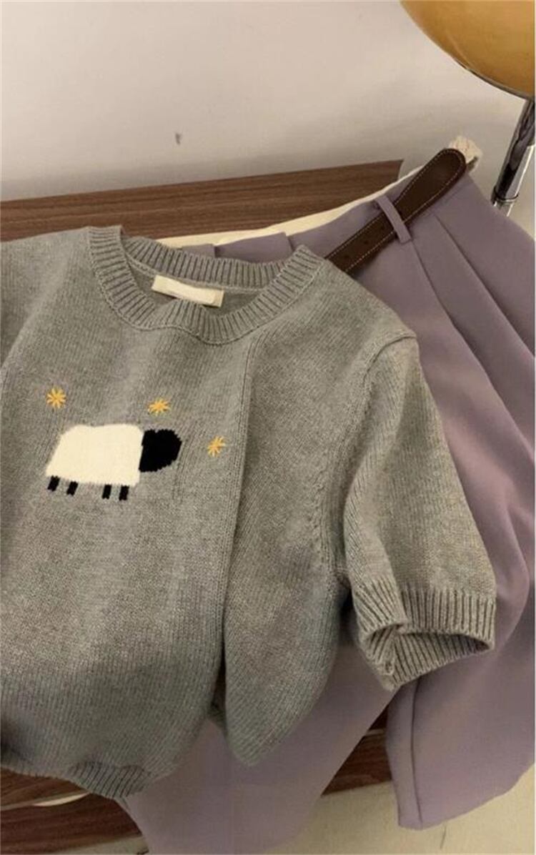 細見えする 上着 ラウンドネック ニットトップス きれい レディース ユニーク sweet系 半袖 tシャツ