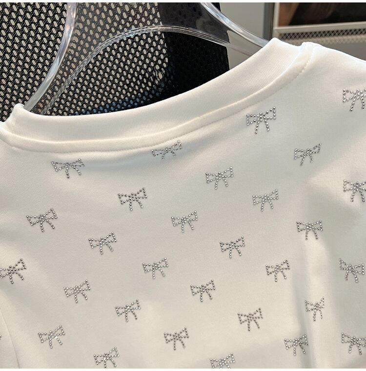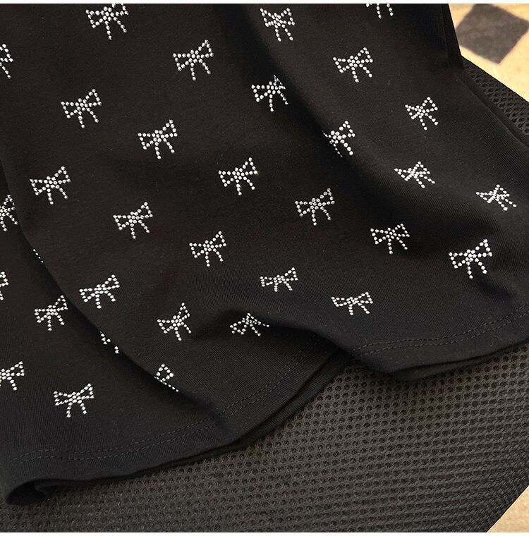 激売れ スリム 洋風 上着 ギャザリング 半袖 Tシャツ 箔押し 蝶ネクタイ デザインセンス ドリル付き