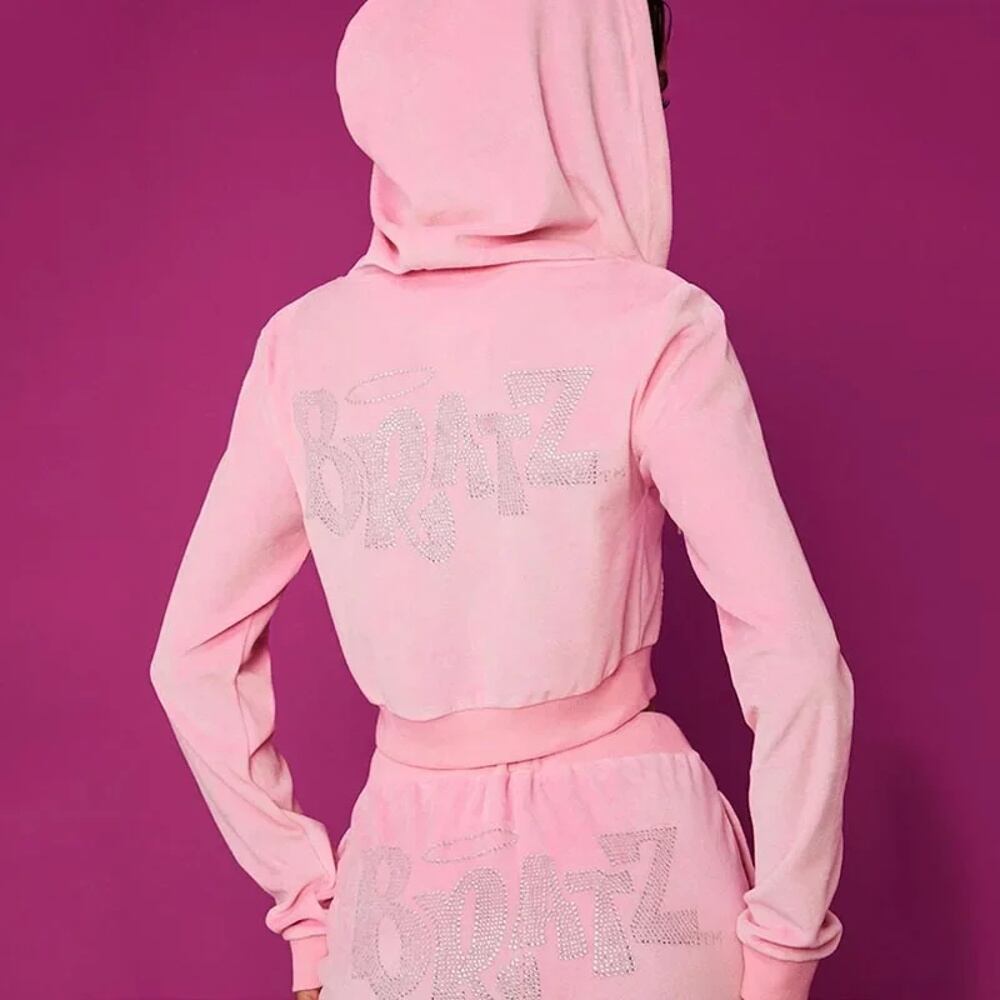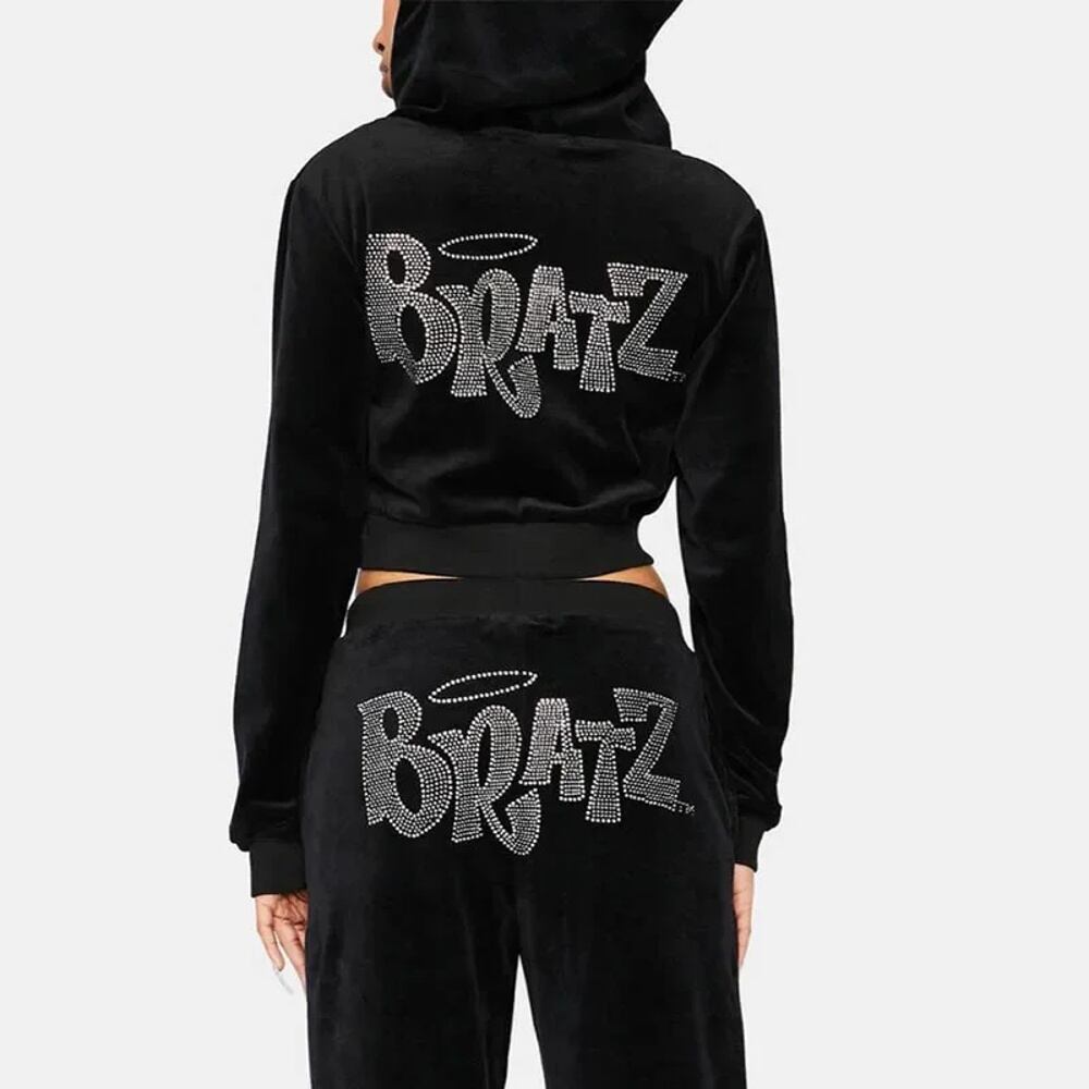女性用特大ジップアップパーカー、ラインストーン、カワイイジョギングパンツ、ブラッツプリント、ピンクのスウェットパンツ、豪華な美的ジョギング、原宿、y2k パーカー ジャージ y2k T240908200720_01