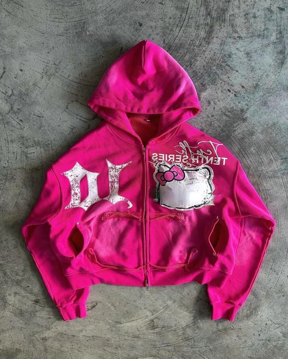 女性用特大ジッパーパーカー,原宿スウェットシャツ,ゴシック漫画服,かわいいグラフィック,カワイイ,ヒップホップ,シリーズ,y2k パーカー ジャージ y2k T240908200753_03