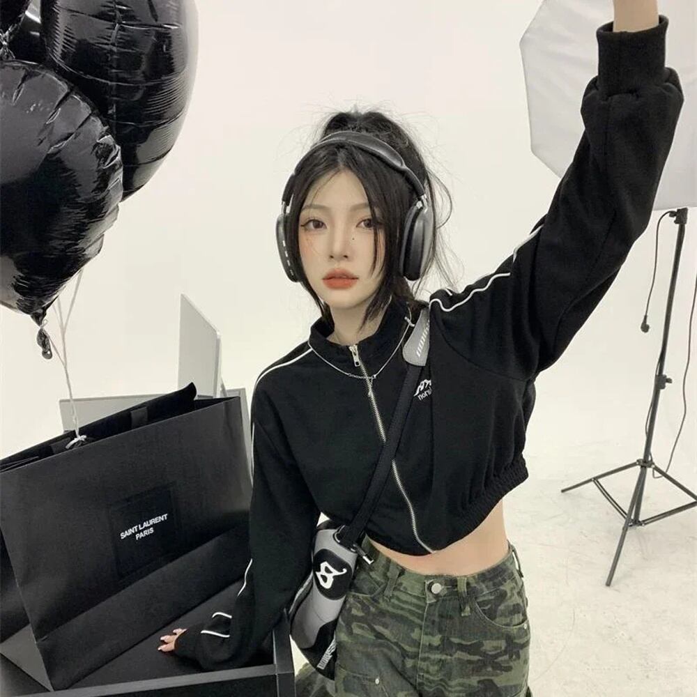 女性のヴィンテージクロップドジップアップスウェットシャツ,長袖のゆったりとしたカジュアルなアウター,韓国のファッション,女性のストリートウェア,春,秋,y2k パーカー ジャージ y2k T240908200806_01
