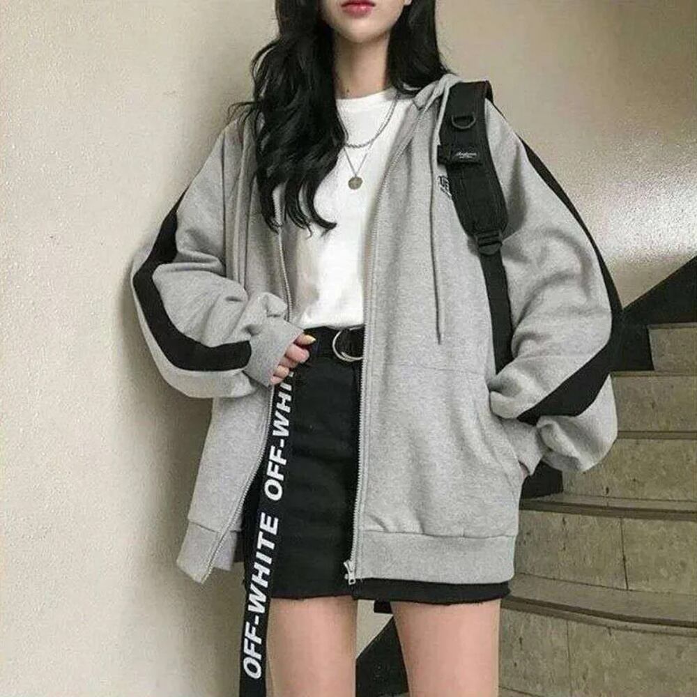 女性用特大スウェットシャツ,y2kドローストリング,フード付き,ジッパー,韓国語,カジュアル,ルーズフィット,ストリートウェア,秋 パーカー ジャージ y2k T240908200811_01