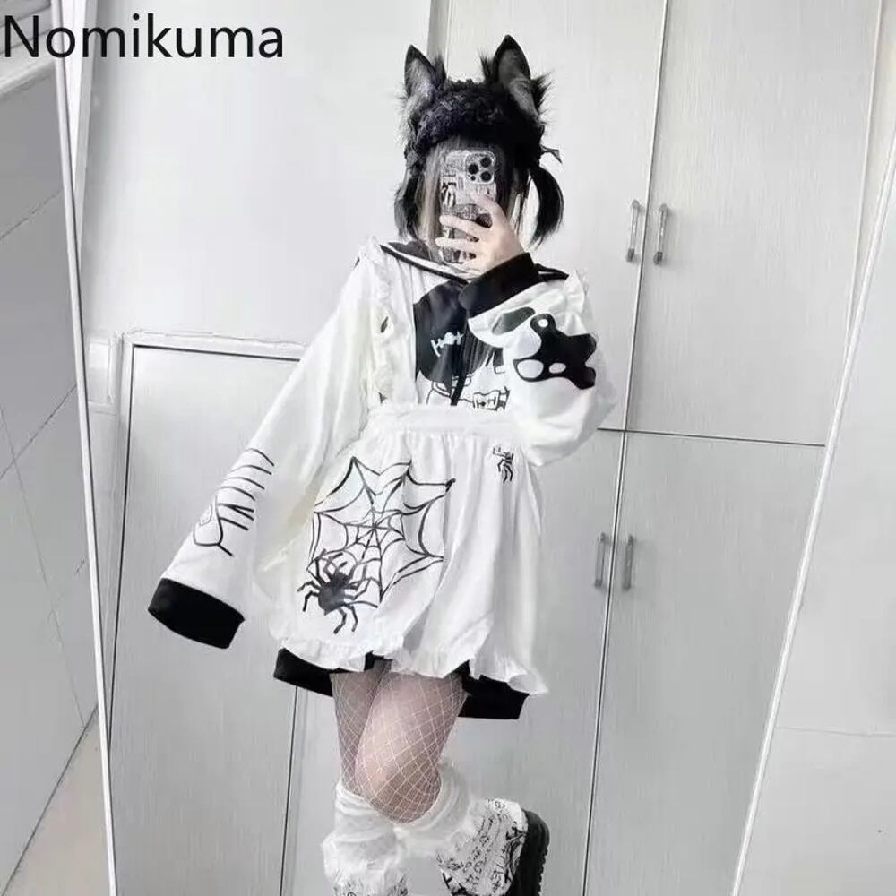 セーラーカラーの女性用フード付きスウェットシャツ,猫柄のスウェットシャツ,ジッパー付きコート,y2kトップス,カジュアルファッション,大きくてかわいい,厚手の服 パーカー ジャージ y2k T240908201305_01
