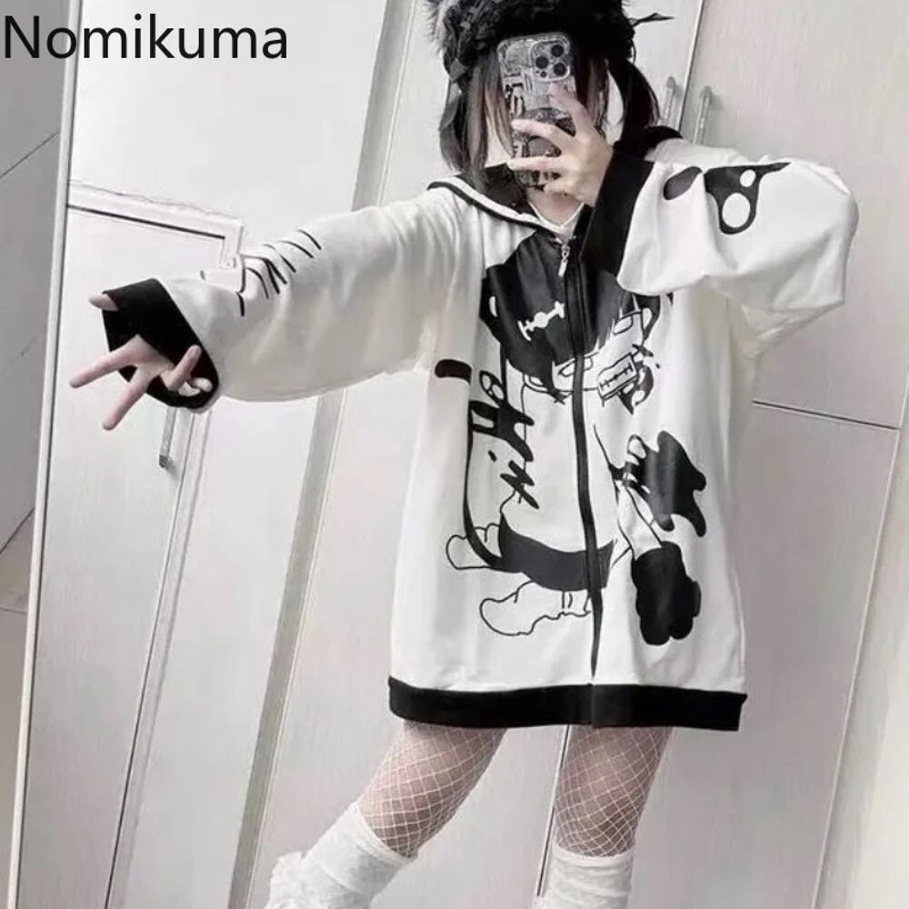 セーラーカラーの女性用フード付きスウェットシャツ,猫柄のスウェットシャツ,ジッパー付きコート,y2kトップス,カジュアルファッション,大きくてかわいい,厚手の服 パーカー ジャージ y2k T240908201305_03