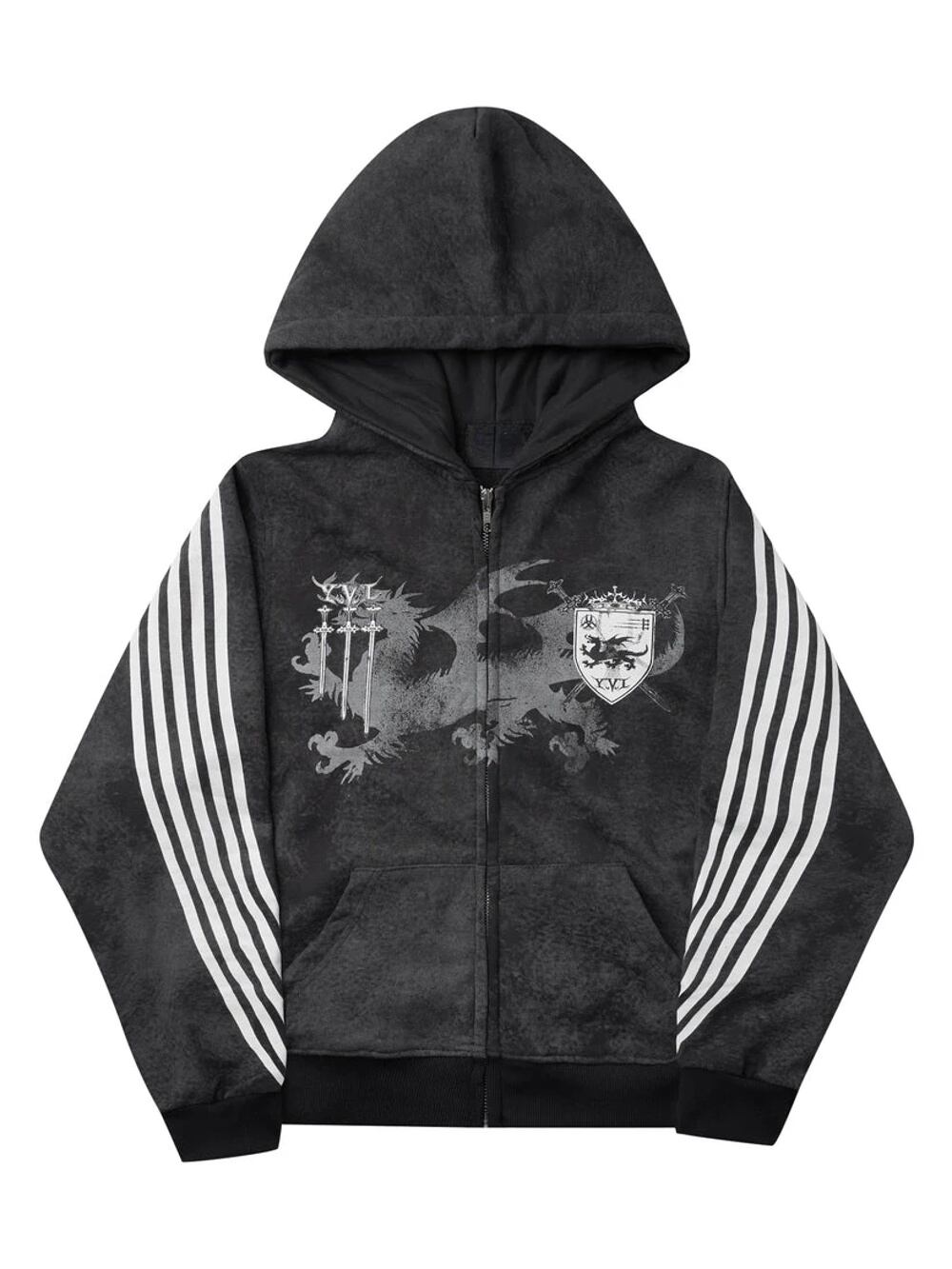 Deeptown-女性のグランジジップアップパーカー、グラフィックプリントフード付きスウェットシャツ、原宿ゴスヒップホップクロップトップ、y2kエステティックストリートウェア パーカー ジャージ y2k T240908201313_02