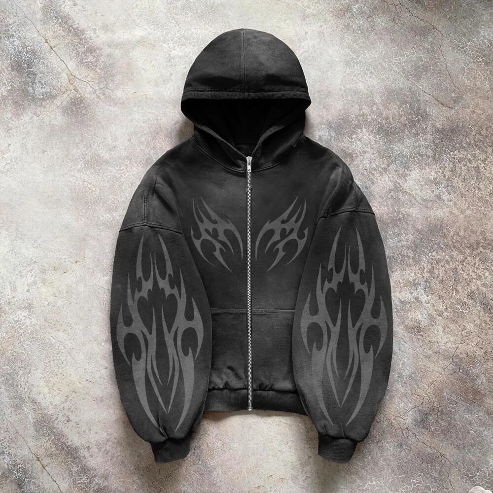 女性のためのウォッシュド不透明な骨格プリントフード付きジャケット、特大のパーカー、アメリカのヴィンテージジッパーカーディガン、y2kストリートウェアウェア服 パーカー ジャージ y2k T240908201352_03