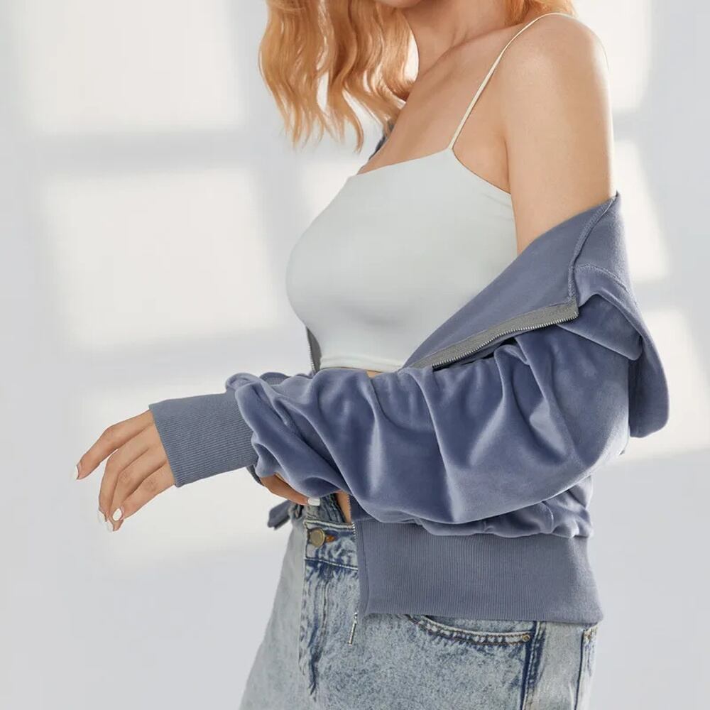 女性用長袖ショートトップ、ジッパーパーカー、サイドポケット、ルーズショートベルベットコート、カジュアルウェア、y2k、トップコート、春、秋 パーカー ジャージ y2k T240908201505_02