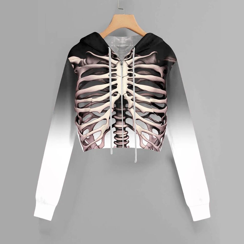 女性用ハロウィンスカルプリントクロップドパーカー、長袖トップス、フルジップフード付きスウェットシャツ、ゴシックストリートウェア、y2k服 パーカー ジャージ y2k T240908201714_04