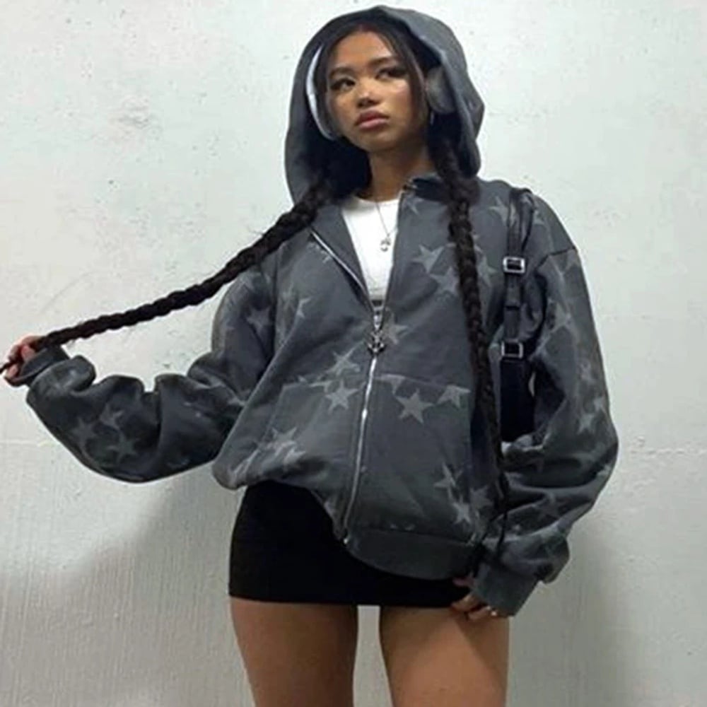 女性用5点星プリントフーディ,ジッパー付きフーディ,ゆったりとしたスウェットシャツ,カジュアルカーディガン,y2kファッション,秋冬,新品,2024 パーカー ジャージ y2k T240908201817_02
