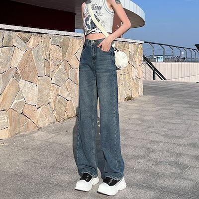 デニムボトムス ワイドパンツ デニムパンツモップパンツ レディース 夏 デザイン感 ハイウェスト 着痩せ ストレートパンツ