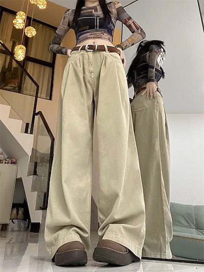 ホワイト ドレープ感 ストレートパンツ カジュアルパンツ レディース 春秋 カーゴパンツ ワイドパンツ モップパンツ ジョガーパンツ ゆったり