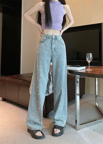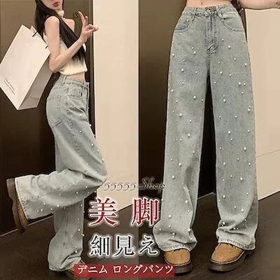 魅力を増すコツ INSスタイル スリム 夏 ロングパンツ ワイドパンツ 真珠 ハイウエスト スリム ジーンズ