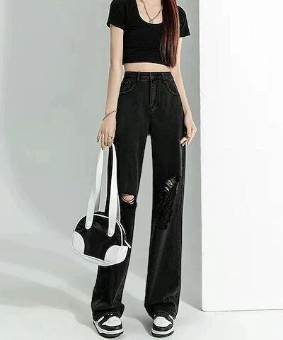 脚長効果!デニムボトムス ダメージジーンズ レディース デニムパンツ 太ももゆったり ワイド ダメージ ジーンズ デニム パンツ ボトム ワイドパンツ ワイドデニム メカ割