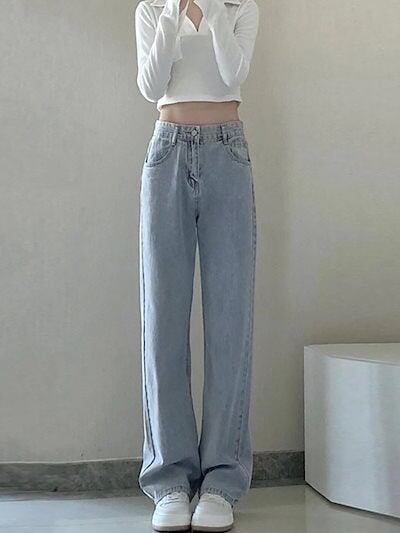 脚長効果抜群!ハイウエストパンツ ブラックストレートジーンズ レディース 2024年秋新作 ドレープワイドレッグ