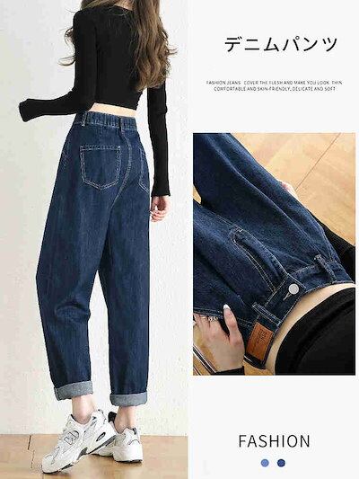ハイウェストデニムボトムス ワイドパンツ 伸縮性のあるウエスト ジーンズ レディース 夏 薄い ゆったり 九分丈パンツ ハーレムパンツ