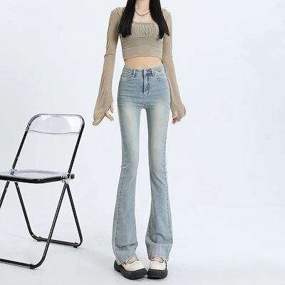 人気 新作 韓国 スラックスパンツ 美脚 マイクロラッパ デニムパンツ おしゃれ パンツ レディース ワイドレッグ 見えやせ ゆったり 垂れ感