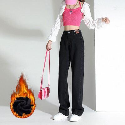レディースジーンズ 裏起毛 厚手 暖かい ハイウエスト ロングパンツ デニムボトムス ロングデニム スキニーパンツ ワイドパンツ 裏起毛ファッション デニムパンツ