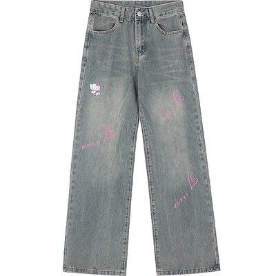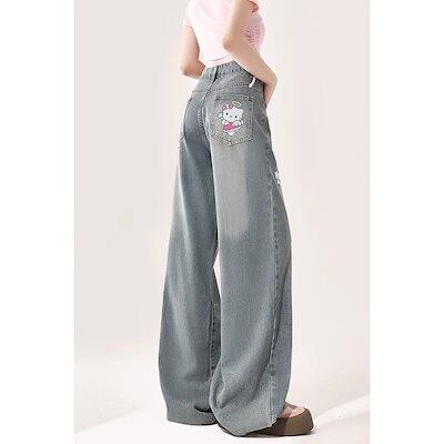 hello kitty プリント レディース 春秋 新しい ハイウエスト ジーンズ ワイドレッグパンツ ゆったり デザインセンス ワイドパンツ